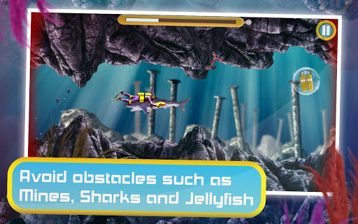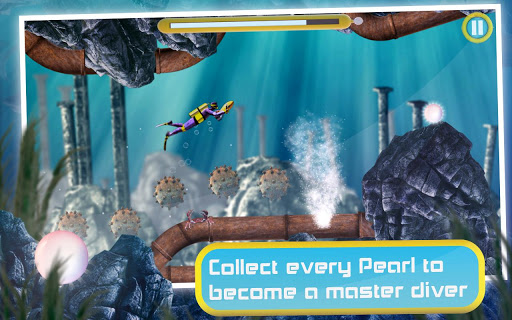 Description: Dive in and explore an underwater maze of deep sea caves, in an action-packed search for precious pearls. Keep an eye out for speed boosts and any unfriendly sea creatures you may encounter on your adventure, but don't forget about the deadly moving minefields! Keep your oxygen tank topped up to ensure you make it out alive. Collect all three pearls in every level to become a master diver.
