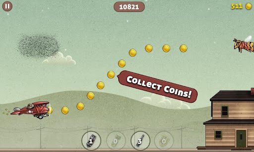 Maneuver your airplane to collect coins and power up your plane with shotguns, bugbombs, rapid fire turrets, and invincible bugshields.