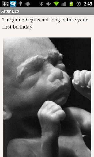 In this text-based interactive fiction, you choose what happens next. It's in the style of pick-a-path gamebooks, but with over a thousand multiple-choice questions, it's much longer and deeper than traditional gamebooks. Alter Ego starts at birth and ends at death, including two substantially different versions, depending on whether you choose to be male or female.
