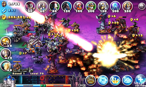 4. Wide variety of combat arms, such as footman, spearman, knight and archer, and each has their own skills and characteristics which can be upgraded. Correspondingly, the enemy also has variety of orcs, tigerish, strong, rapid and almost indestructible powerful boss. The key to victory is the good co-ordination.