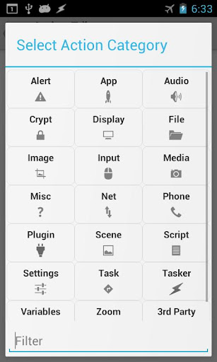 * TASKER: Change Icon Set, If, End If, Goto Action, Perform Task, Profile Toggle, Query Action, Set Widget Icon, Set Widget Label, Stop, Wait, Wait Until