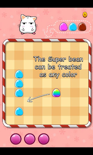 1: Match 5 or more of the same color beans together(horizontal, vertical or diagonal ).