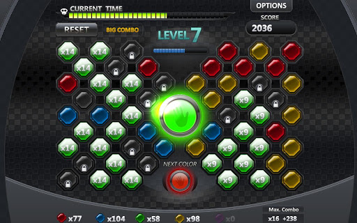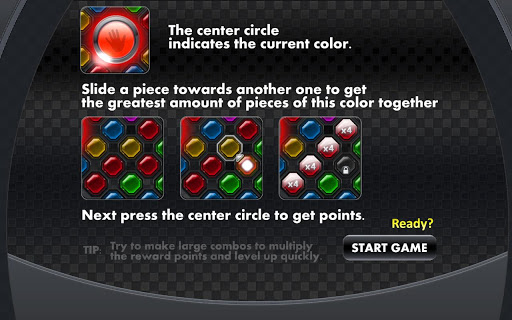 Next press the center circle to get points. You will get more points the more pieces of the current color are together.