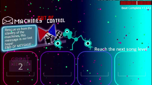Play the Space Drum to liberate the people of the Ecstatica System from the evil machines who enslaved them in the name of profit.