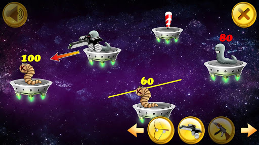 Blast dangerous worms with cartoonish weapons, but remember: aliens do patiently wait for their turn though. Kill them!