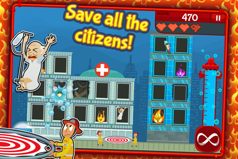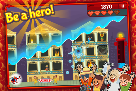 Description: Things are about to heat up so get ready for some firefighting action! The city buildings are in flames and only the firefighters can help. Douse the flames with powerful hoses to extinguish the fire and guide the life net to save desperate citizens.
