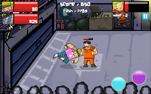 Description: The 80's are back in the future in this relentless Defense-Brawler mayhem!! Keep prisoners from escaping their nuclear jail, collect their lunch money and use it to beef-up your defense and your fighting skills.