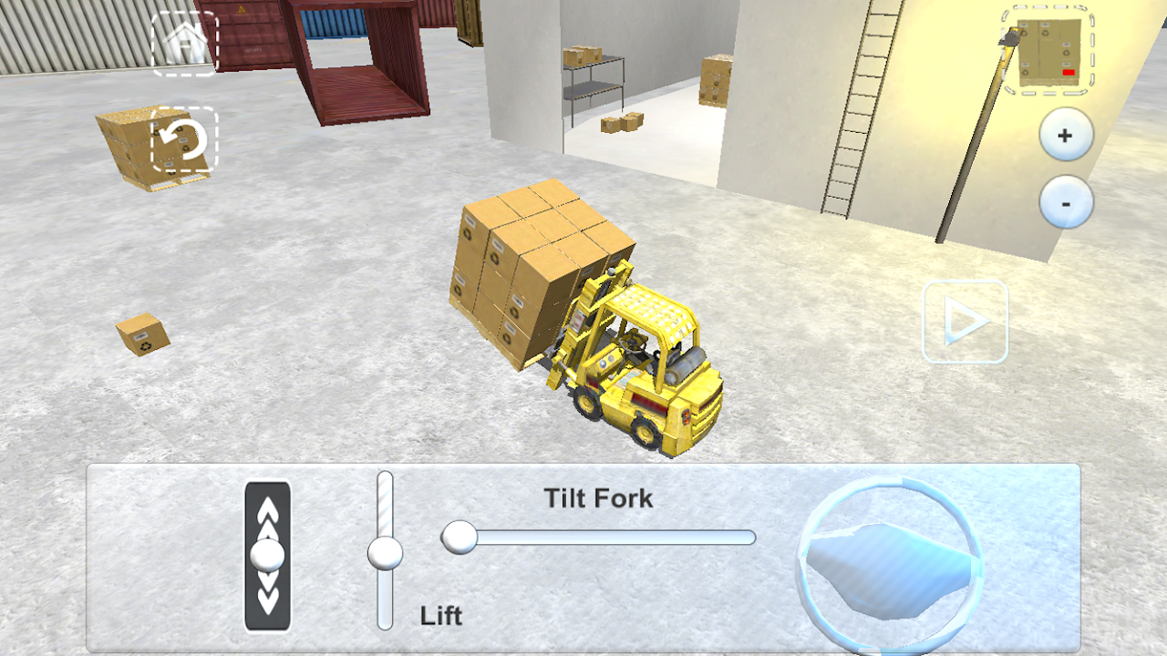 Factory Warehouse : Maneuver a forkift through a factory, pick up crates, and load them onto the back of a big rig.