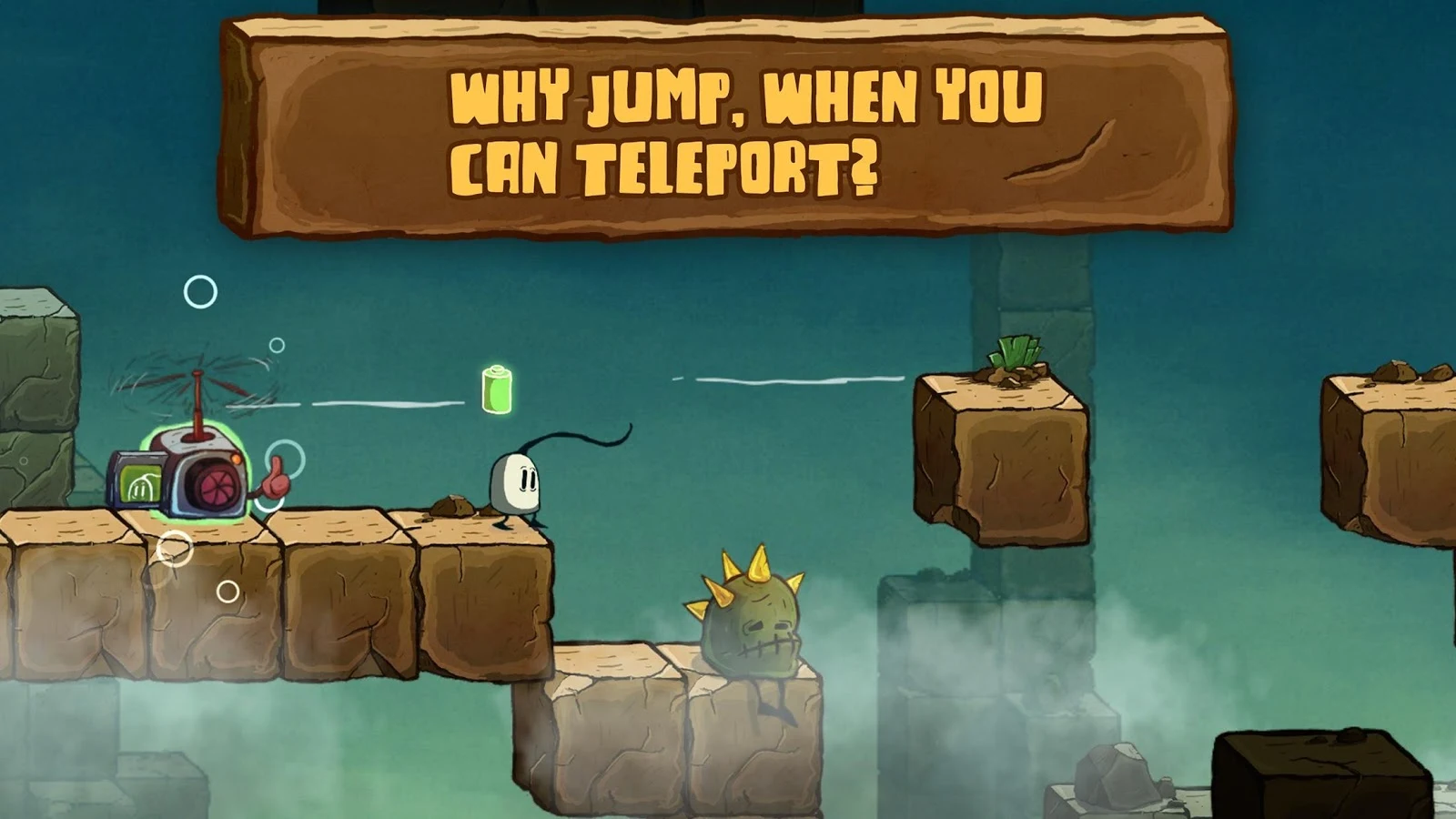 Let yourself get carried away and and find the scattered remains of Hendrik’s house. Charge your batteries and teleport Hendrik through the ever-moving levels.