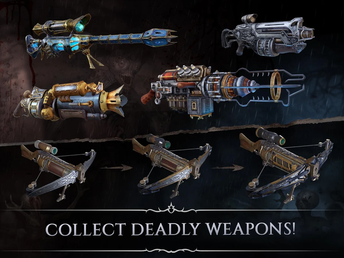 At your disposal are crossbows, bows, shotguns, magic staffs and unique samples of experimental weapons!